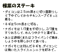 さて、頂き物の大根で幸せな気分になったので今回は「根菜のステーキ」のレシピをご紹介します。南部鉄のすきやき鍋で焼くとおいしくできます。
