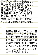 そういえば、最近読んだ「感じる食育 楽しい食育」(サカイ優佳子・田平恵美 著[コモンズ])という本の中に、ちょっとおもしろいことが書いてありました。この本によれば、日本語は触覚的な感性が著しく発達している言語で、食に関しても表現する言葉が非常に多いのだそう。なんでも著者が、日本での生活が長いアメリカ人に尋ねてみたところ、「納豆のネバネバはsticky、ご飯もsticky、餅のもちもちはsticly and chewy、長いものネバトロはslimy。もっちりぺたぺたまったりねっとりねばねばなどは、訳すのがとてもむずかしい」と言われたとか。私は英語はさっぱりなのですが、たとえば確かに“コトコト”なんていう言葉も日本語ならではかもしれません。