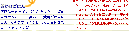 ちなみにインターネットの「Google」で「たまごかけごはん」を検索したら、な〜んと81,600件もヒットしました。ずず〜っと見ていくと、皆さまいろいろこだわりがあるようで、「日本卵かけごはんシンポジウム」なる催しまであるとか。