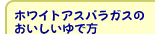 その後しばらくして、グリーンアスパラガスが普通にスーパーに出回るようになり、さらに時を経て生のホワイトアスパラガスを初めて味わったときは、まさに衝撃。