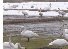 春三月、雪の残る田んぼに白鳥の群がやってきて、北への長旅の準備にえさをついばんでいた。 五月、早苗が朧月夜にゆれた。