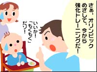 夕方、少し涼しくなったので、デン子さんとコムタンは近くの公園へ、お散歩に出かけました。そろそろ一人歩きしそうな気配。コムタンのお靴姿も、さまになってきました。来月には、1歳のお誕生日を迎えます。おじいちゃん・おばあちゃん・いとこのユキちゃん家族もお招きしてのパーティを計画中です。 公園で、お隣の中学生・玲子さんに会いました。子犬のテリー君のお散歩は、玲子さんの日課なのだそうです。あら!玲子さんは、歯の矯正中。 「父の歯並びが良くないので、遺伝でしょうねって矯正の先生から言われました。でも、それだけでなく、食べ物を上手に飲み込めない習慣が、歯並びに悪い影響を与えていることも、指摘されました。自分では全く意識していませんでした。」・・・先生のお話によると、『乳歯のときから、歯の生え方にあった食べ物をタイミングよく与えてあげないと、噛んだり飲み込んだりする運動が、上手にマスターされず、歯や顎の発育に問題を起こす可能性がある』ということらしいのです。 ひと手間かかる離乳食。でも、そこには想像していた以上に、深い意味があることに、感心してしまったデン子さんでした。5・6か月頃のゴックン期、7・8か月頃のモグモグ期、9〜11か月頃のカミカミ期、1歳〜1歳3か月頃のパクパク期。家事に追われる日々ですが、雑誌などを参考に、楽しみながらステップアップをはかりたいものですね。 コムタンが生まれてもうすぐ1年。お誕生日って、コムタンのお祝いと同時に、「ママ・パパの奮闘をたたえる日」でもあるんだと、この1年を振り返り、感慨深いデン子さんでした。記念に残るパーティにしょうね、コムタン! |