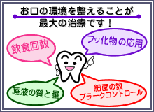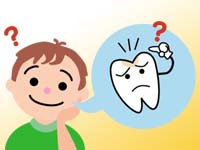 | 「学校に歯医者さんが来て、検査をしてくれたよ。」 今日、コムタンは学校歯科検診の結果表を持って帰りました。 『ムシ歯の数:1本・・・歯科医院で治療しましょう。』ですって! 毎日、欠かさず、仕上磨きをしてるのに! ア〜ンしてみて!・・・ はは〜ん!溝に色が着いている左上の奥歯のことね。これって、ムシ歯なの? そういえば、幼稚園の時の検診では全く問題なかったので、完全に安心して、歯科医院へ定期健診に出かける事もなくなっていました。そこで早速次の日、コムタンと近くの歯科医院に行く事にしました。状況を説明すると先生は、「この歯の置かれている環境をチェックして、ムシ歯の進行度を調べ、その結果によって処置方針を検討しましょう!」と言いました。歯みがき習慣・おやつの様子・フッ化物の応用状況などを聞かれた後、問題となっている歯について、ムシ歯の進行状況を検知レーザーでチェックすることになりました。レーザーをあてると『ウィ〜ン!』という小さな音がしました。数値がデジタル表示されました。これらのデータによって、今の段階では、自宅でのケアプログラムを新に設定し、経過観察をすることが望ましいとの診断を受けました。 ケアプログラムの成果を確認するため、また、唾液検査を行ってより詳しい情報を得るため、一ヵ月後に再来院する予約を取って帰りました。 守れるか否か、デン子さんの腕にかかっています。コムタンと力を合わせて、 無理なく、しっかり環境整備に励みます!決意を新にするデン子さんでした。